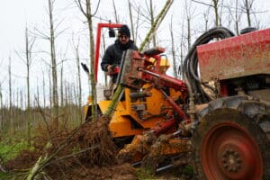 Deux méthodes mécanisées distinctes : extraction des végétaux en racines nues ou en motte.