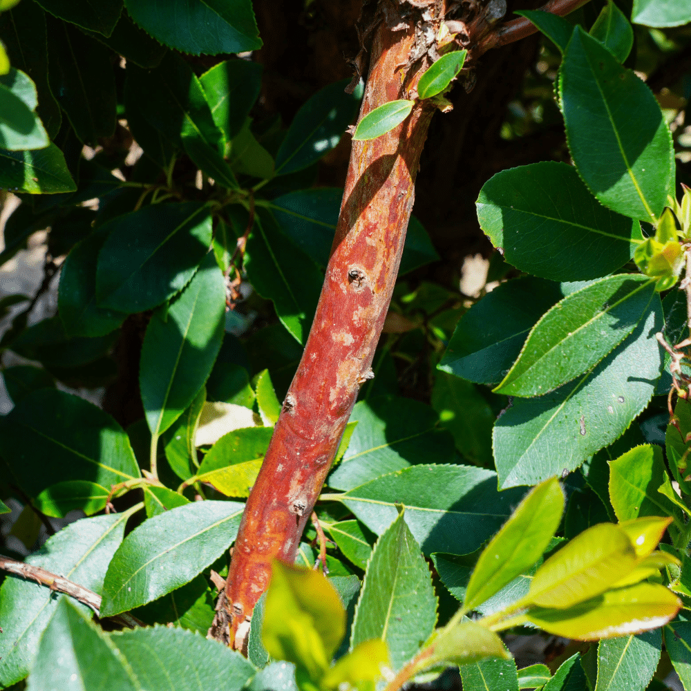 Ecorce décorative et feuillage persistant.