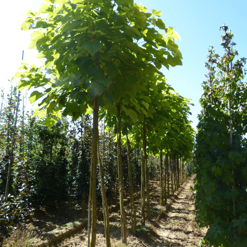 Arbre à la croissance rapide et grandes feuilles dorées.