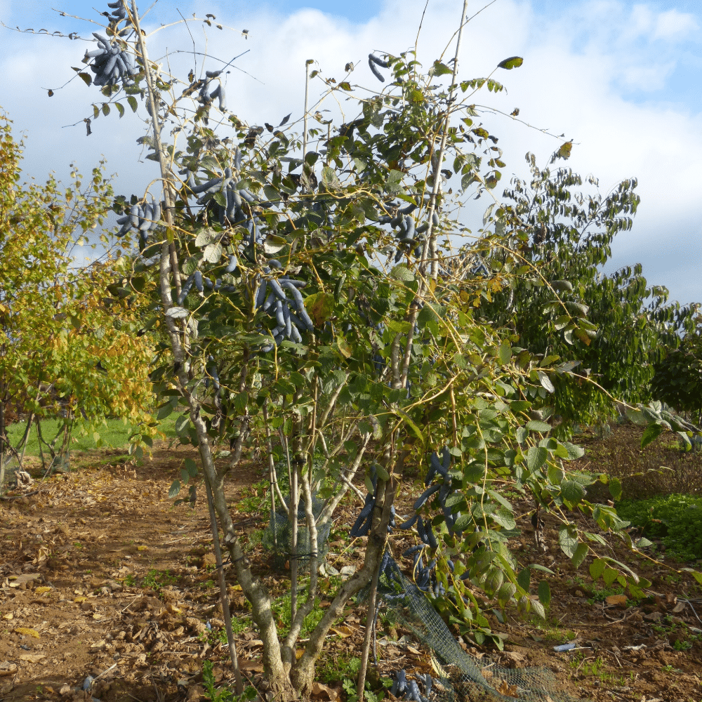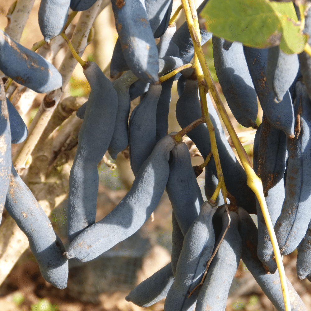 Fruits : gousses bleues.