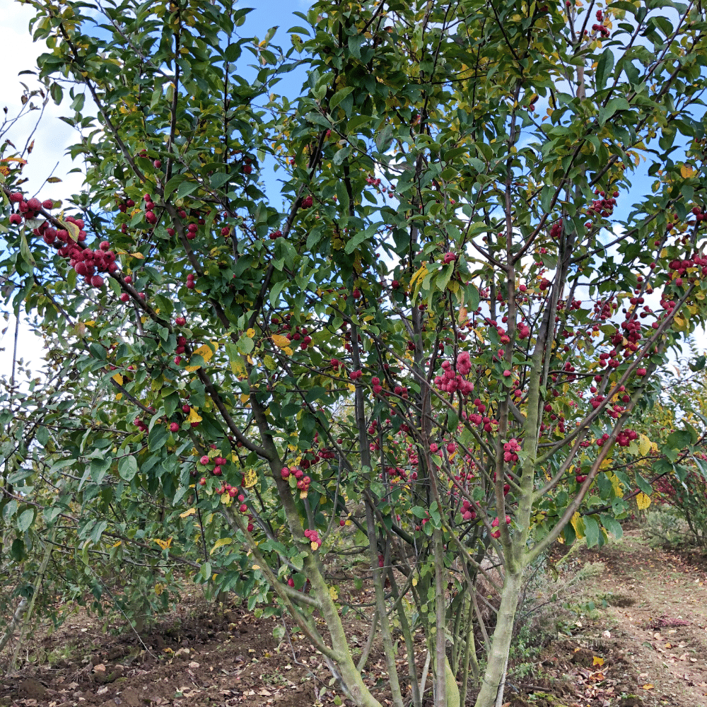 Très fructifère, fruit orange à rouge vif.